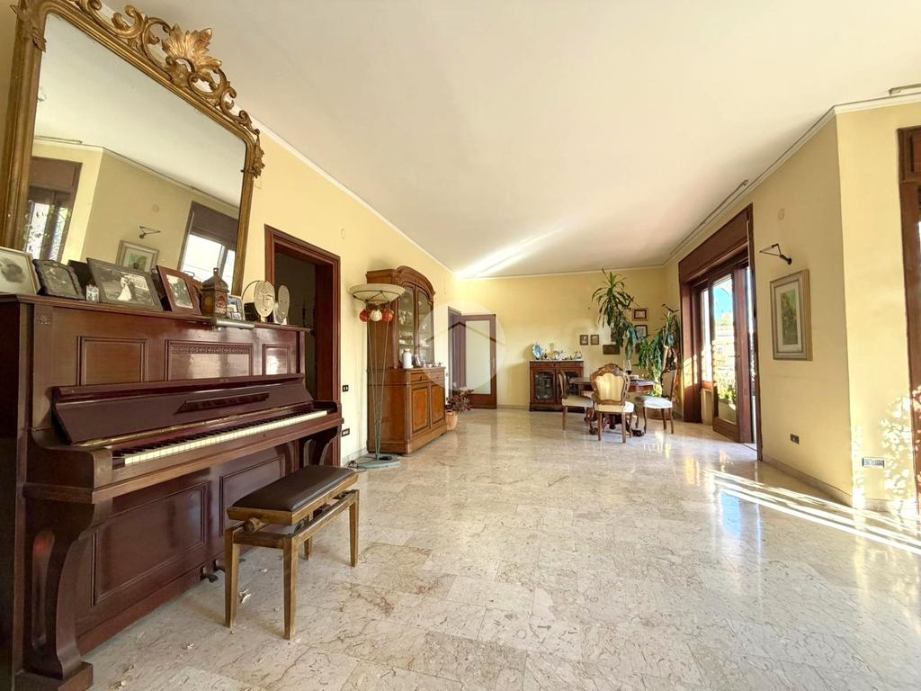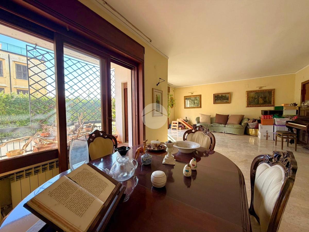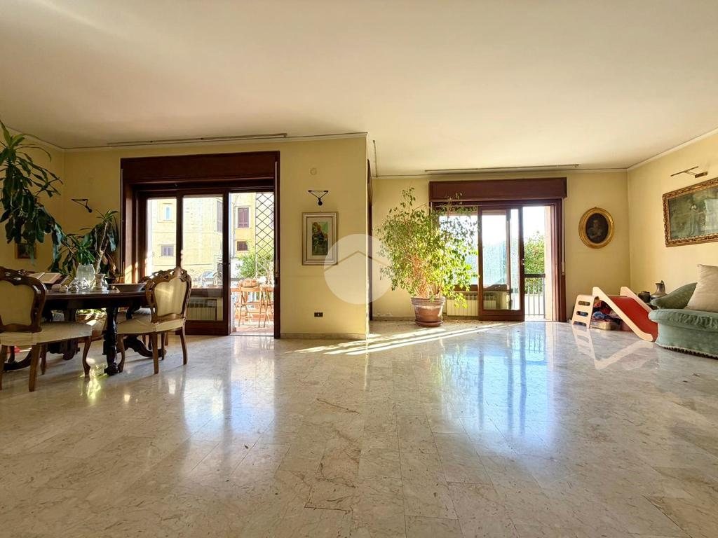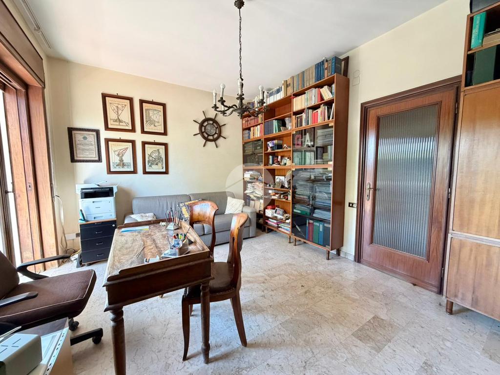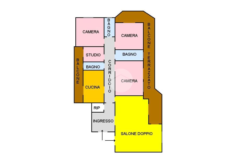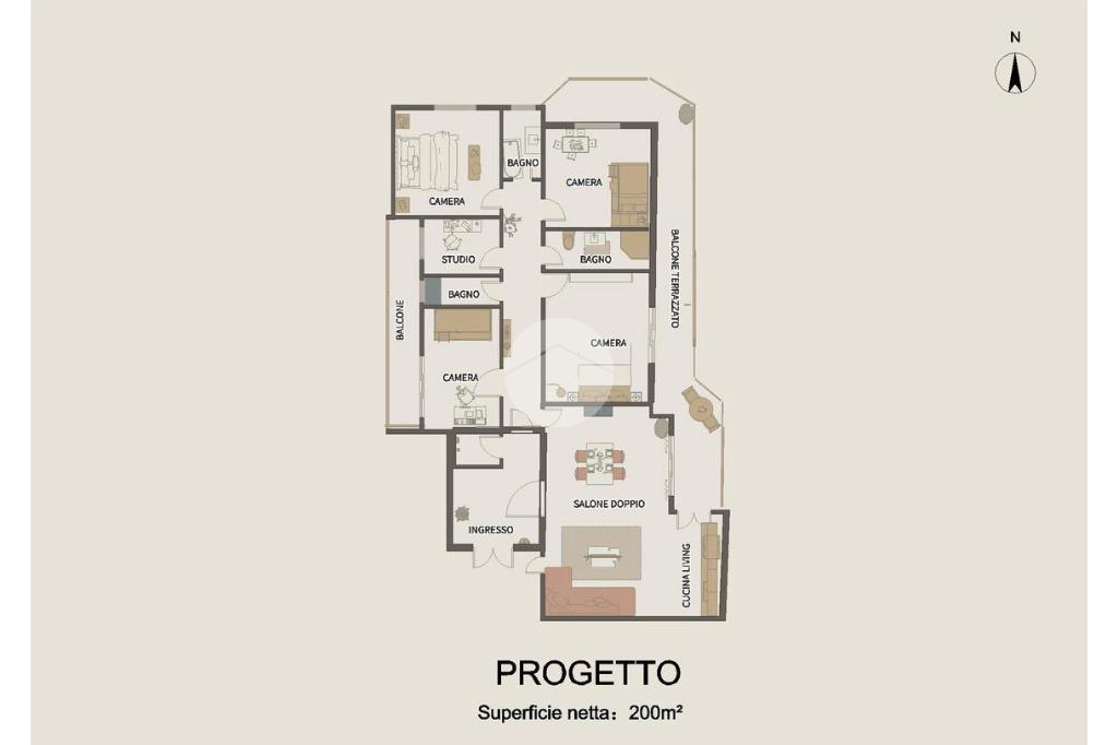 La soluzione è così disposta:Ingresso in disimpegno, salone doppio ,cucina abitabile, tre camere da letto, oltre camera studio e tre bagni; il tutto circondato da ampio spazio esterno di balconata terrazzata che costeggia gran parte del cespite e permette di godere di una vista libera.