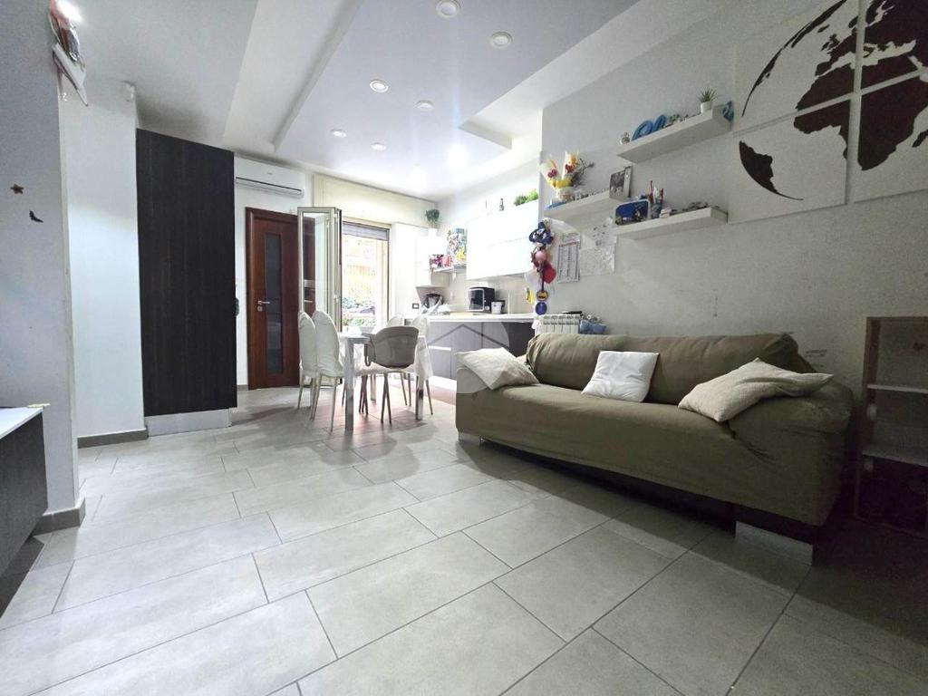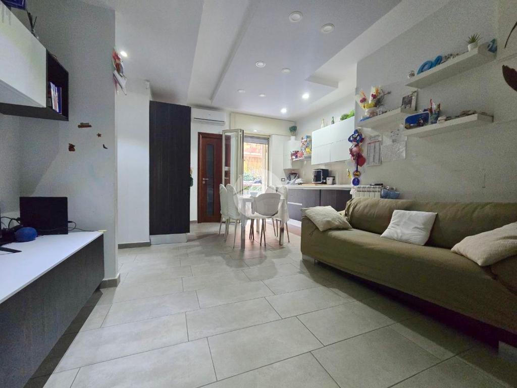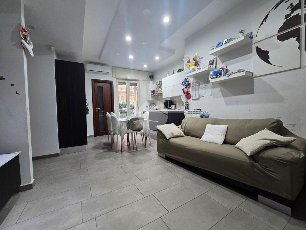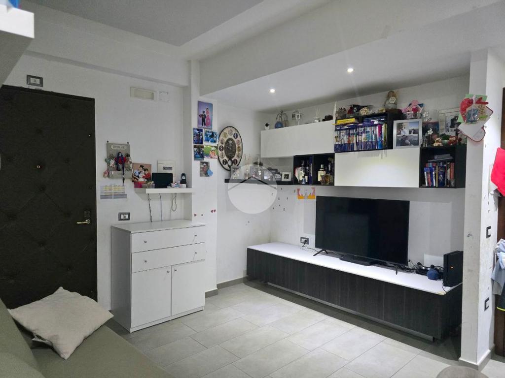Attualmente si presenta con una divisione ottimale, ed è così composta: Ingresso in salone living con cucina, dal quale si ha accesso al terrazzo, piccolo disimpegno che separa la zona giorno dalla zona notte composta da due camere da letto e bagno, oltre comodo ripostiglio.